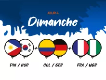 Pack Journée 4 : Dimanche 15 Mars Résumé de votre sélection Résumé Votre sélection est vide Veuillez sélectionner dans la partie gauche : une catégorie, un tarif et la quantité associée Vos choix Sélectionnez une catégorie Sélectionnez vos places Catégories Quelle catégorie souhaitez-vous ? Catégories CATEGORIE PRESTIGE 90 €A partir de 45 € par produit CATEGORIE OR 72 €A partir de 36 € par produit CATEGORIE 1 57 €A partir de 28,50 € par produit CATEGORIE 2 42 €A partir de 21 € par produit CATEGORIE 3 29 €A partir de 14,50 € par produitAnnuler Valider WEB - PACK JOURNEE QtéQuantité 012345678910 Valider ces choix Suivant Réinitialiser Your products of Day 4 Votre sélection est valide PHI / KOR + COL / GER PHI / KOR + COL / GER 15.03.2026 - 12:30 & 15:30 15.03.2026 - 12:30 & 15:30 Produit ajouté à votre package Retirer ce produit de votre package Produit retiré de votre package FRANCE / NIGÉRIA FRANCE / NIGÉRIA Dimanche 15 mars 2026 - 19:00 15.03.2026 - 19:00 Produit ajouté à votre package Retirer ce produit de votre package Produit retiré de votre package